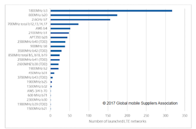 A leggyakrabban használt LTE FDD és TDD sávok a Global mobile Suppliers Association (GSA) 2018. januári adatai alapján: